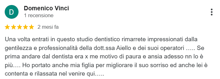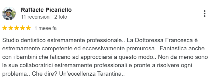 Il Dentista amico dei bimbi tra i più recensiti di tutta Taranto e provincia. Oltre 80 recensioni con un punteggio medio di 4,9/5.