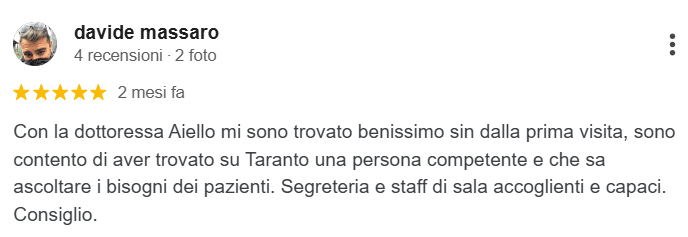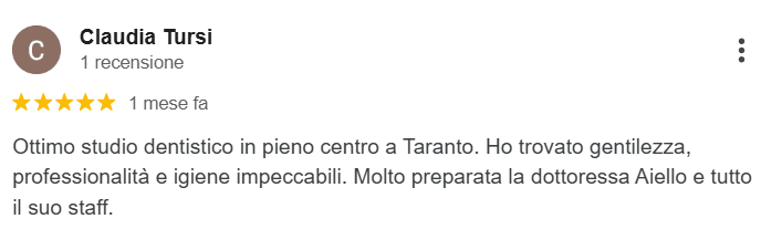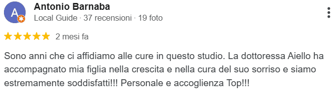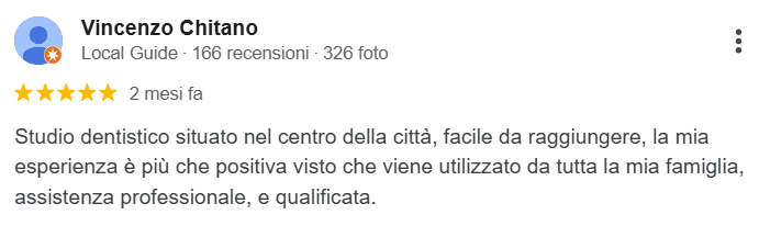 Il Dentista amico dei bimbi tra i più recensiti di tutta Taranto e provincia. Oltre 80 recensioni con un punteggio medio di 4,9/5.